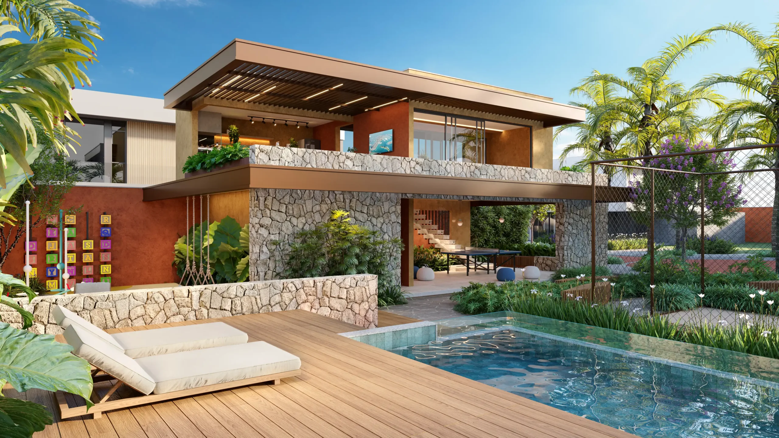 Inspirado nas dunas do deserto, o projeto foi idealizado com cores e texturas terrosas que evocam aconchego e sofisticação. Sua proposta arquitetônica inovadora harmoniza formas, funcionalidade e estética, criando espaços de convivência integrados, confortáveis e visualmente marcantes. Com design contemporâneo e paisagismo exuberante, cada detalhe foi pensado para proporcionar bem-estar e exclusividade em um ambiente único.